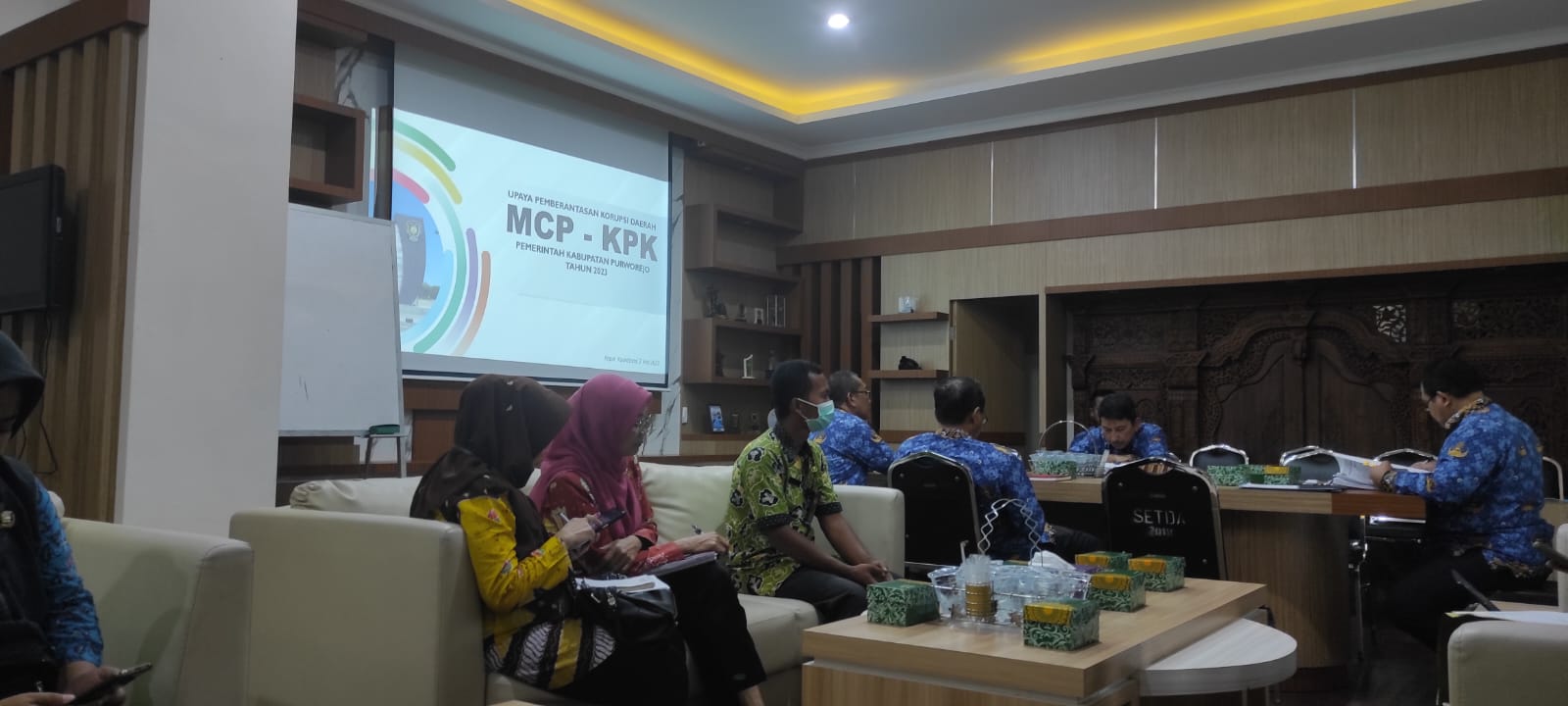Selasa, 2 Mei 2023, DPMPTSP Kabupaten Purworejo mengikuti Monitoring dan Evaluasi Capaian Aksi Pencegahan Korupsi Pemerintah Daerah Program MCP -KPK RI Tahun 2023 bertempat di Ruang Kerja Sekretaris Daerah yang diikuti semua OPD Kabupaten Purworejo