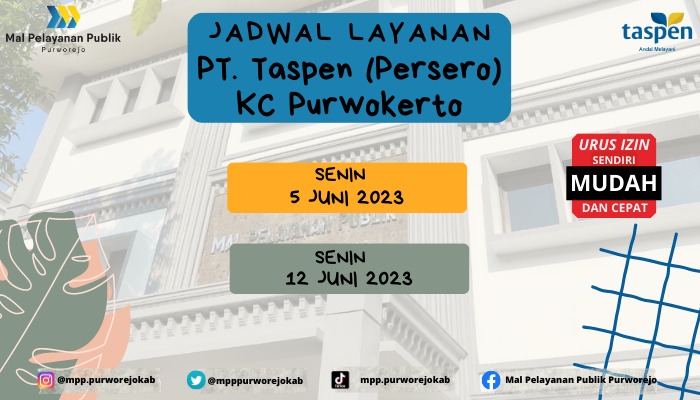 Jadwal Pelayanan PT Taspen Bulan Juni Tahun 2023 di Mall Pelayanan Publik Kabupaten Purworejo