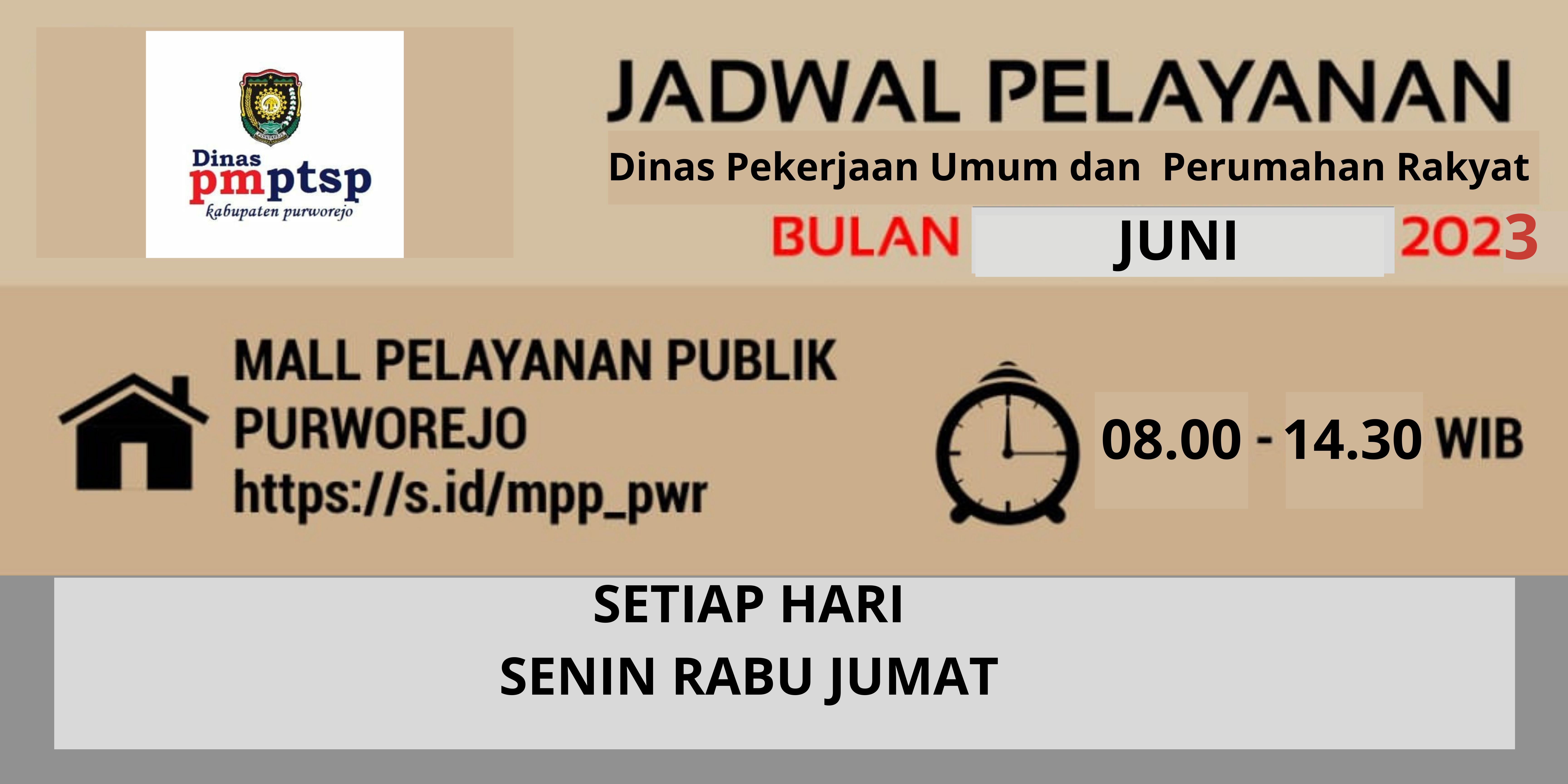 Jadwal Pelayanan DPUPR Bulan Juni Tahun 2023 di Mall Pelayanan Publik Kabupaten Purworejo