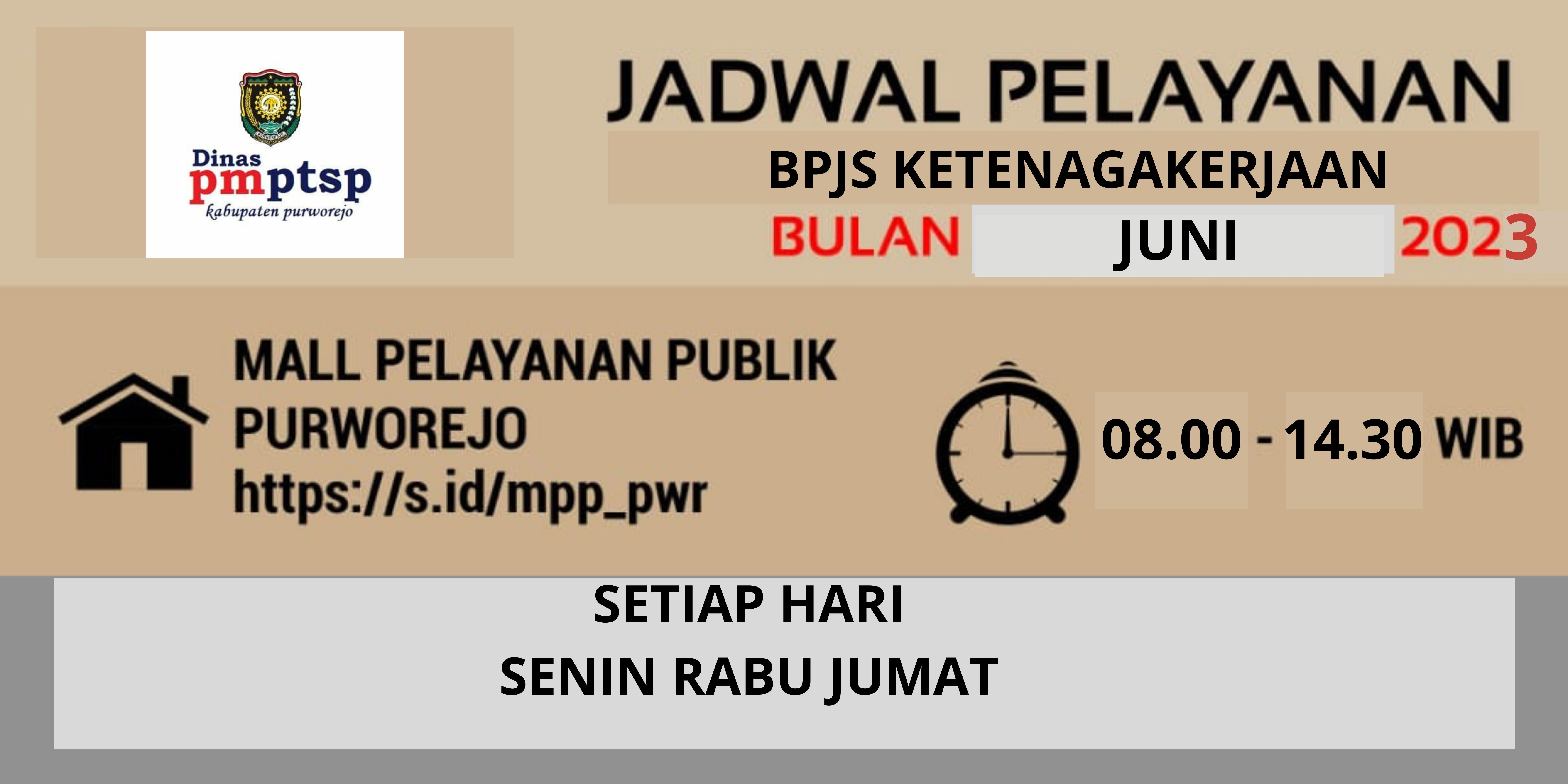 Jadwal Pelayanan BPJS Ketenagakerjaan Bulan Juni Tahun 2023 di Mall Pelayanan Publik Kabupaten Purworejo
