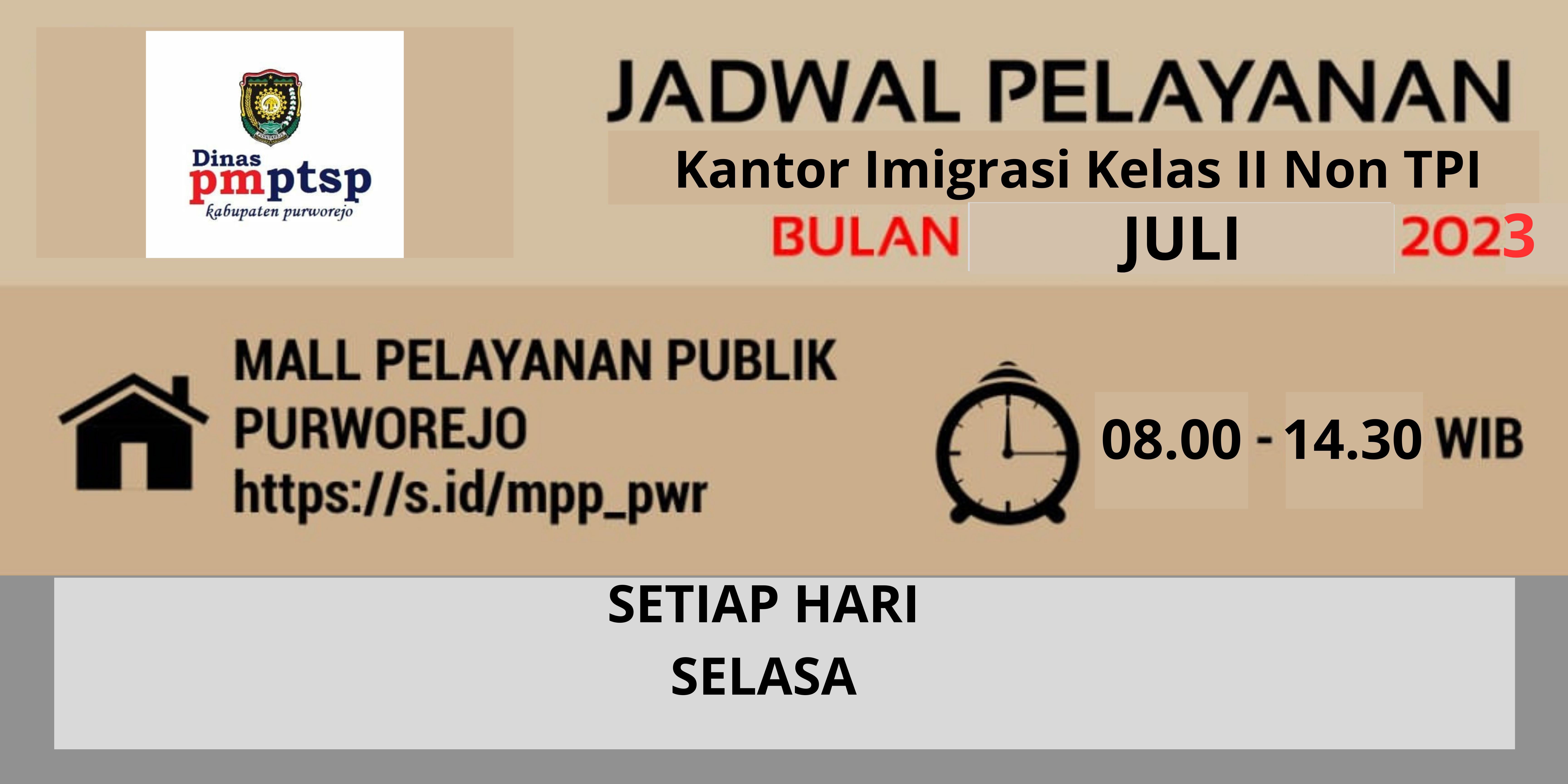 Jadwal Pelayanan Kantor Imigrasi Kelas II Non TPI Bulan Juli Tahun 2023 di MPP Kabupaten Purworejo