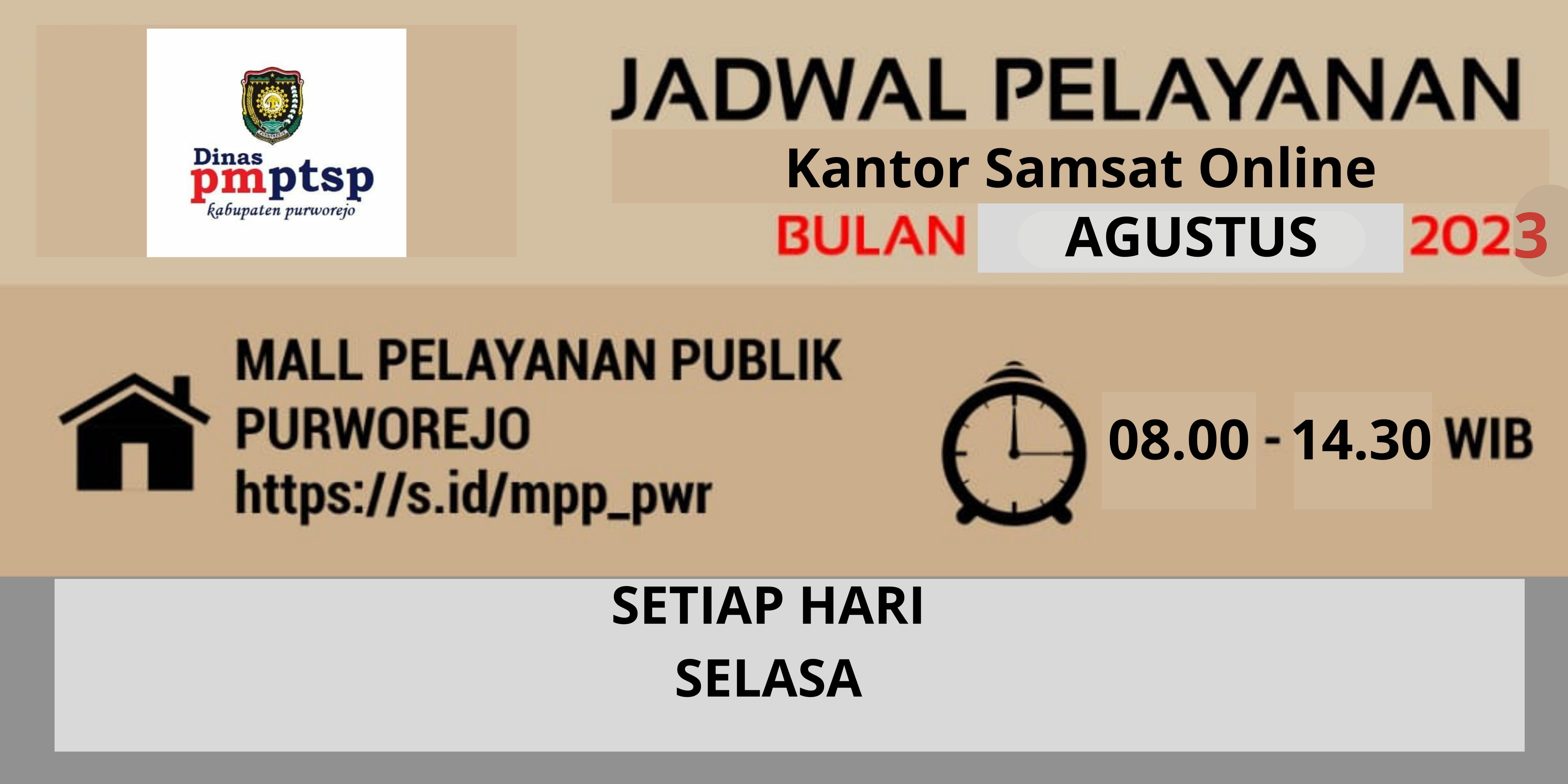 Jadwal Pelayanan Samsat Online Bulan Agustus Tahun 2023 di Mall Pelayanan Publik Kabupaten Purworejo