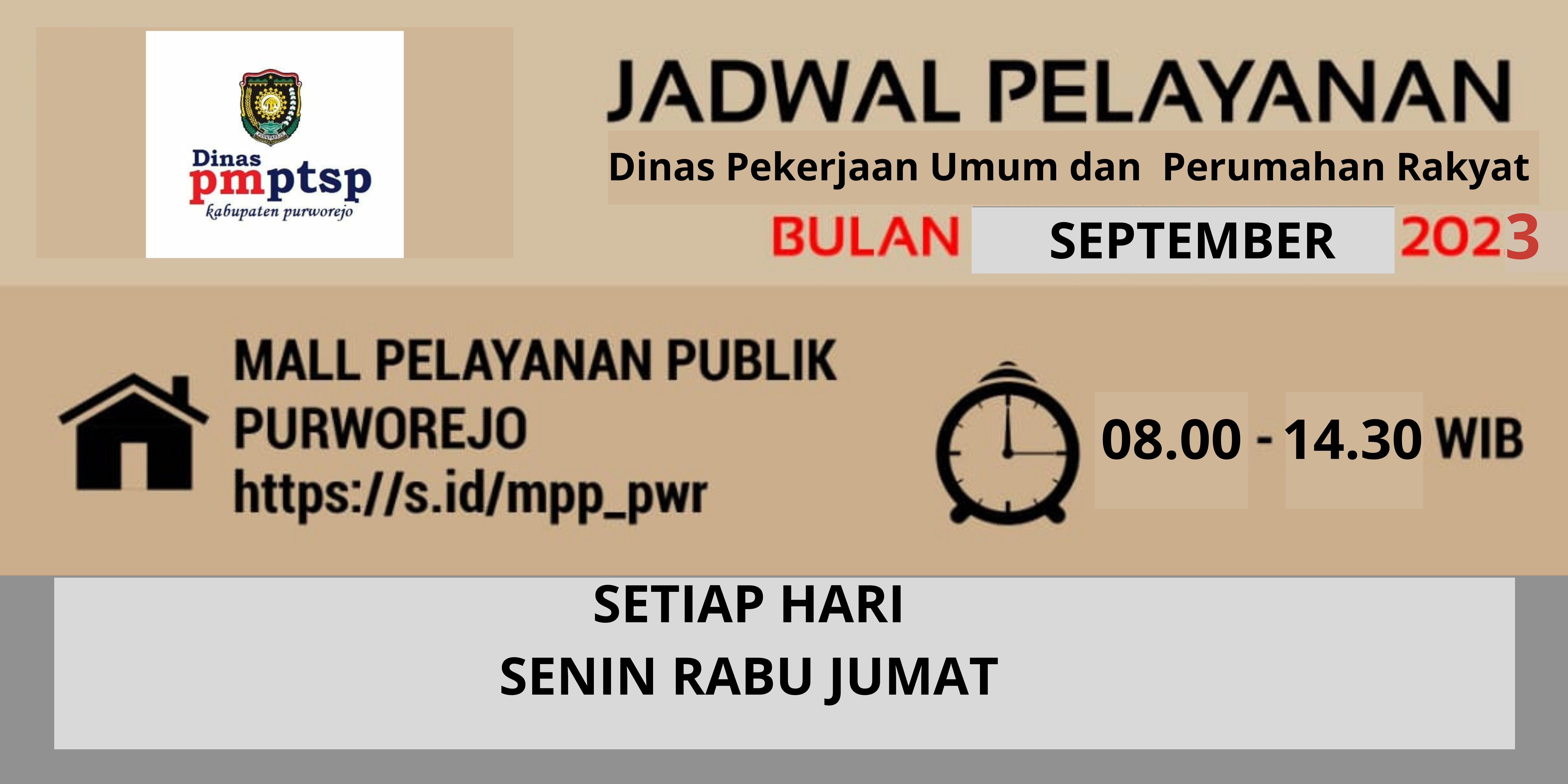Jadwal Pelayanan DPUPR Bulan September Tahun 2023 di Mall Pelayanan Publik Kabupaten Purworejo