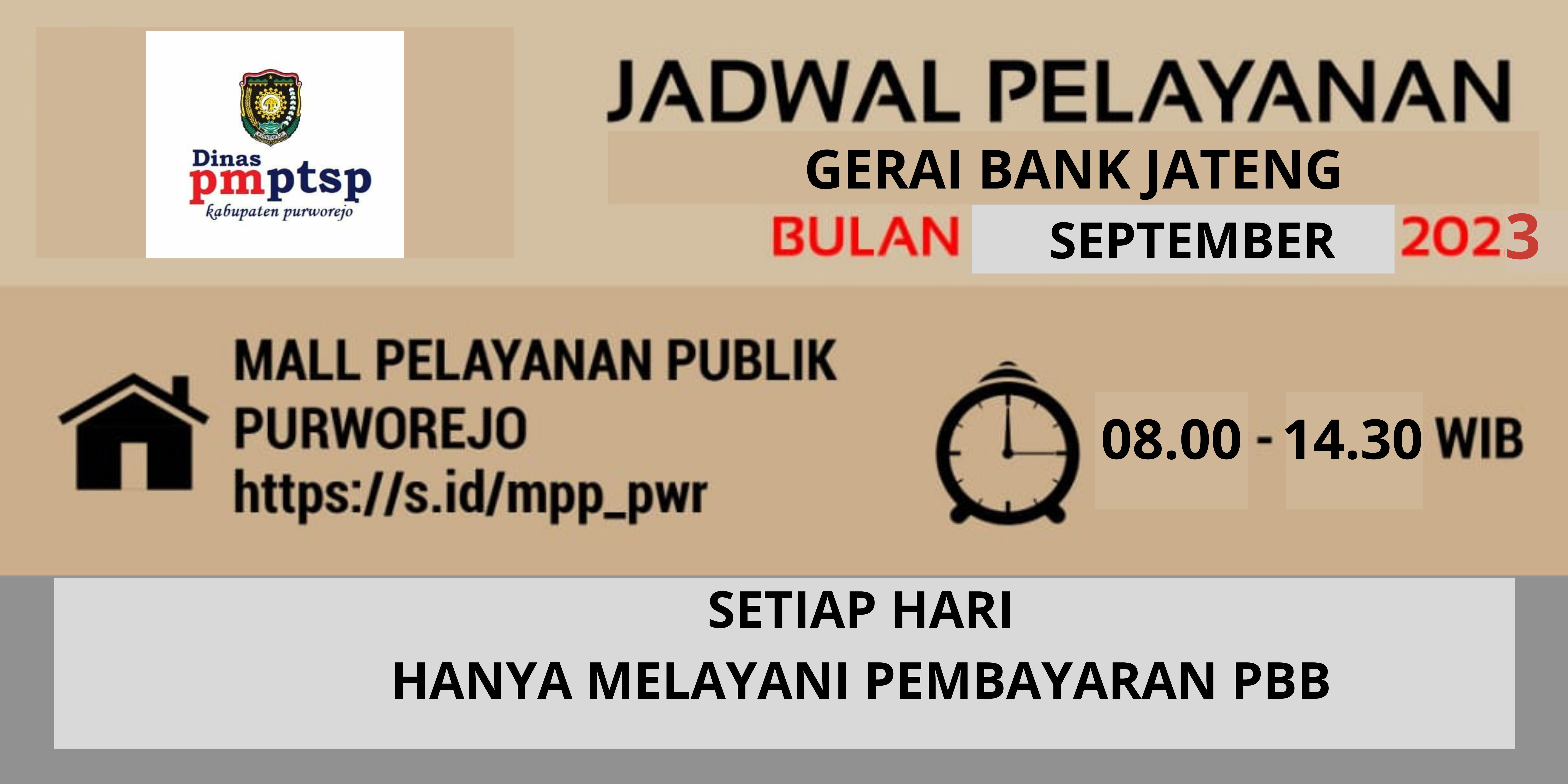Jadwal Pelayanan Gerai Bank Jateng Bulan September Tahun 2023 di MPP Kabupaten Purworejo