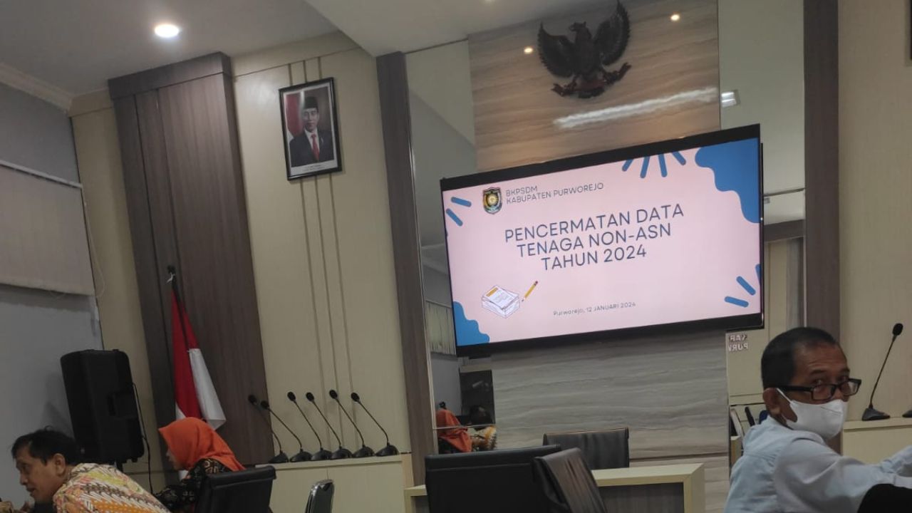 Jumat, 12 Januari 2024 DPMPTSP Kabupaten Purworejo mengikuti Desk Pencermatan Data Tenaga Non ASN 2024 bertempat di Aula BKPSDM Kabupaten Purworejo