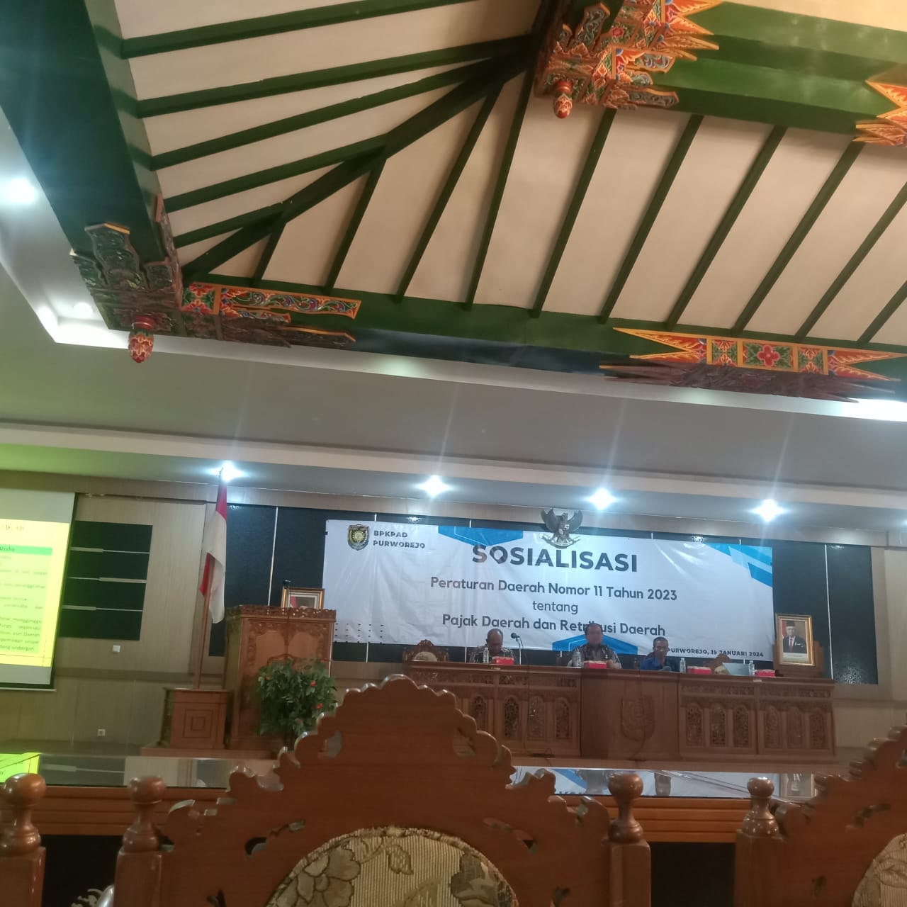 Jumat, 19 Januari 2024 DPMPTSP Kabupaten Purworejo mengikuti Sosialisasi Perda Nomor 11 Tahun 2023 tentang Pajak Daerah dan Retribusi Daerah di Ruang Arahiwang