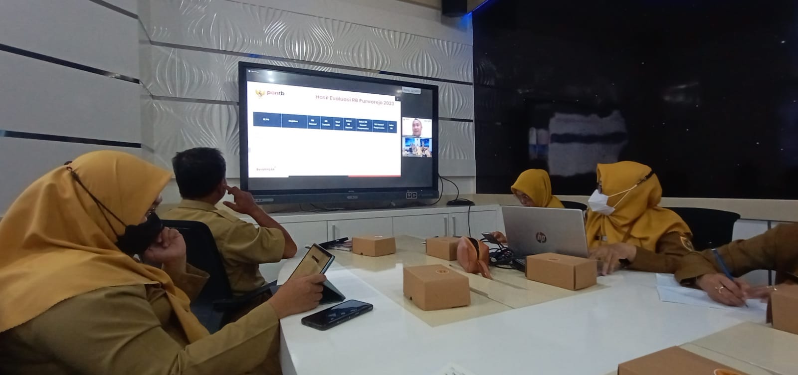 Senin, 06 Mei 2024 DPMPTSP Kabupaten Purworejo mengikuti Zoom Meeting persiapan pelaksanaan penilaian reformasi birokrasi general dan refeormasi birokrasi tematik dengan Kemenpan RB di ruang comammand center