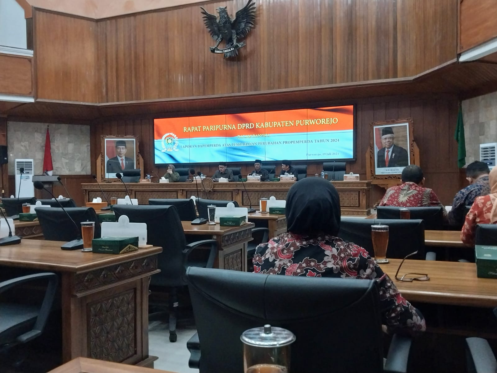 Jumat, 19 Juli 2024 DPMPTSP Kabupaten Purworejo mengikuti rapat paripurna DPRD dalam rangka laporan Bapemperda Atas pembahasan perubahan Propemperda 2024 di Kantor DPRD Kab. Purworejo