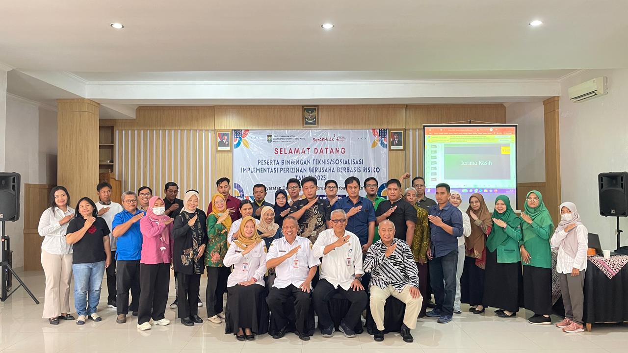 Selasa 21 Oktober 2025 – Dinas Penanaman Modal dan Pelayanan Terpadu Satu Pintu (DPMPTSP) Kabupaten Purworejo menyelenggarakan kegiatan Bimbingan Teknis (Bimtek) dan Sosialisasi Implementasi Perizinan Berusaha Berbasis Risiko dengan tema “Persyaratan Dasar Perizinan Berusaha Berbasis Risiko”, bertempat di Hotel Sanjaya Inn, Purworejo.