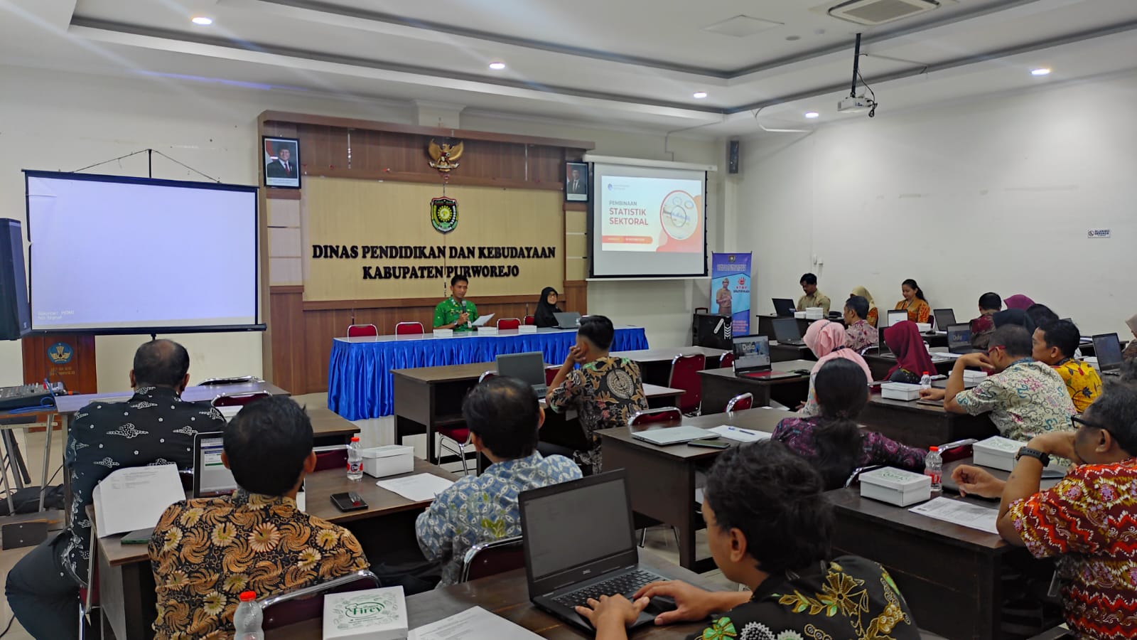 Jum'at 24 Oktober 2025, DPMPTSP Kabupaten Purworejo mengikuti pembinaan data statistik sektoral di Ruang Aula Dinas Pendidikan L. 3. Pembinaan dibuka oleh Plt. Kepala DINKOMINFOSTASANDI Kabupaten Purworejo. Kegiatan diikuti oleh Walidata Pendukungnya, Produsen Data Statistik tingkat Kabupaten Purworejo. Tujuan pembinaan data statistik adalah tersedianya data statistik yang valid, akurat, terupdate dan sesuai dengan standardisasi sehingga dapat digunakan dalam pengambilan kebijakan. Tim Penyelenggara Satu Data diharapkan dapat berperan sesuai dengan kedudukannya dalam Tim Penyelenggara Satu Data Kabupaten Purworejo.