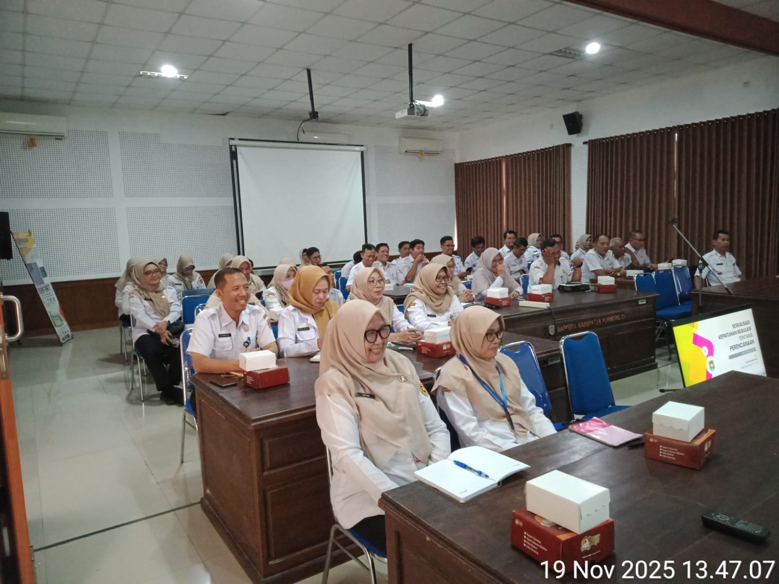 DPMPTSP Kabupaten Purworejo mengikuti kegiatan Sosialisasi Kepatuhan Regulasi tentang Perencanaan dan Penganggaran yang diselenggarakan di Aula Bapperida Kabupaten Purworejo pada 19 November 2025.