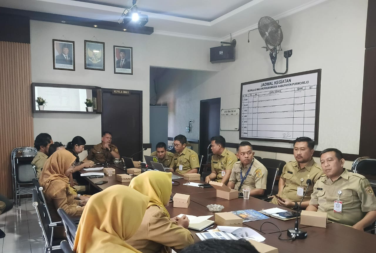Rapat Koordinasi Tindak Lanjut Tinjauan Lapangan atas Bangunan Kios di Terminal Non Bus Kutoarjo. Selasa, 20 Januari 2026 di Aula Dinas Perhubungan Kab. Purworejo. Rapat dipimpin oleh Kepala Dinas Perhubungan Kab. Purworejo dan diikuti oleh DPMPTSP bersama OPD terkait di lingkungan Pemkab Purworejo. Rapat membahas bangunan yang berada di lokasi Terminal Non Bus Kutoarjo terkait kesesuaian fungsi bangunan, pemanfaatan tata ruang dan legalitasnya.