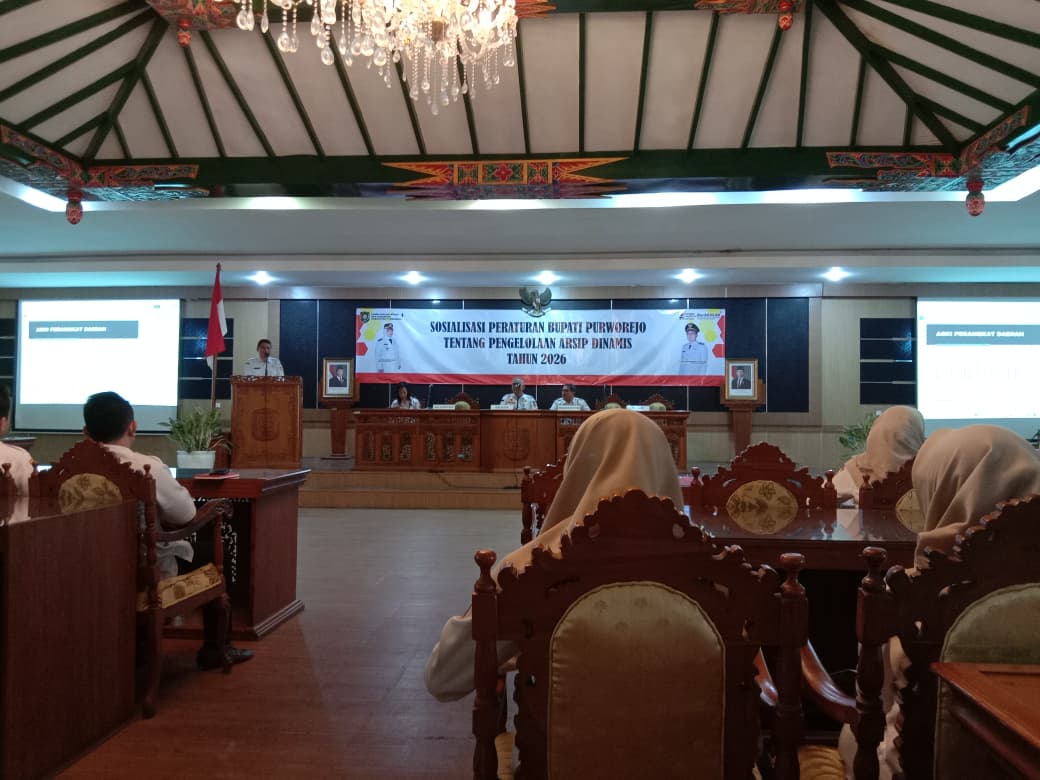 Rabu, 11 Maret 2026 DPMPTSP Kabupaten Purworejo mengikuti Sosialisasi Peraturan Bupati Purworejo tentang Pengelolaan Arsip Dinamis. Sosialisasi ini merupakan kegiatan yang diselenggarakan oleh Pemerintah Kabupaten Purworejo melalui Dinas Perpustakaan dan Kearsipan untuk memberikan pemahaman kepada perangkat daerah mengenai pelaksanaan pengelolaan arsip secara modern dan terintegrasi. Kegiatan ini berkaitan dengan Peraturan Bupati Purworejo Nomor 12 Tahun 2025 tentang Sistem Informasi Kearsipan Dinamis Terintegrasi (SRIKANDI) di lingkungan pemerintah daerah.